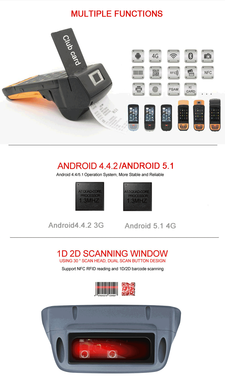 Multip;e Functions : Printer/Fingerprint/Barcode Scanner /IC Card Reader